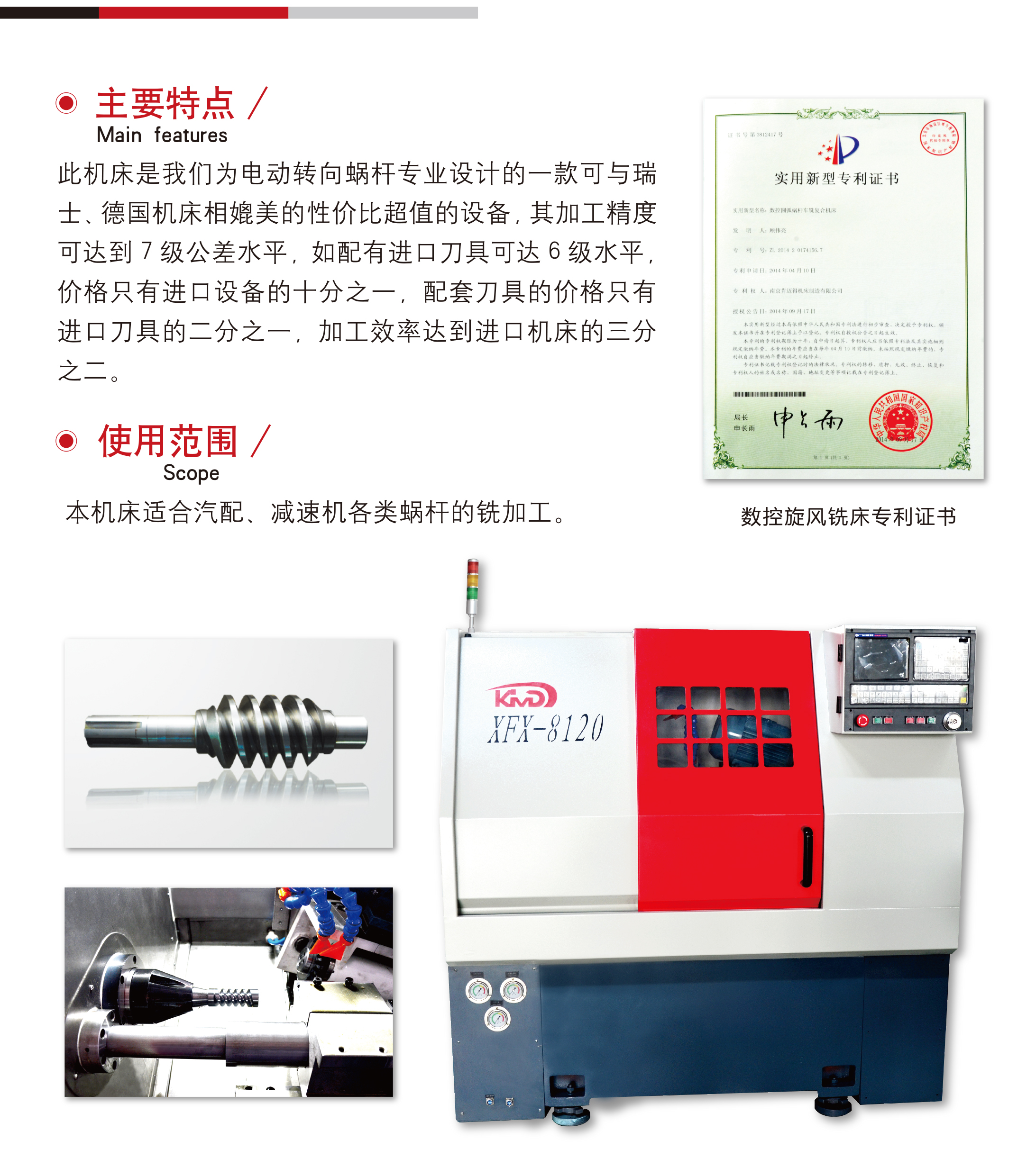 簡要描述: 此(ci)機床是我們(men)爲電動轉向(xiang)蝸杆專業設(she)計的一款具(ju)備瑞士,德國(guo)機床相媲美(měi)的性價比超(chāo)值的設備,其(qi)加工精♍度可(ke)達到7級公差(chà)水平,如配有(yǒu)進口刀具可(kě)達6級水平,價(jia)格隻有進口(kou)設備的十分(fen)之一,配套刀(dāo)具的價格隻(zhī)有進🌐口刀具(jù)的二分之一(yi),加工效率🚶‍♀️達(dá)到進口機🙇‍♀️床(chuang)的三分之二(èr)。