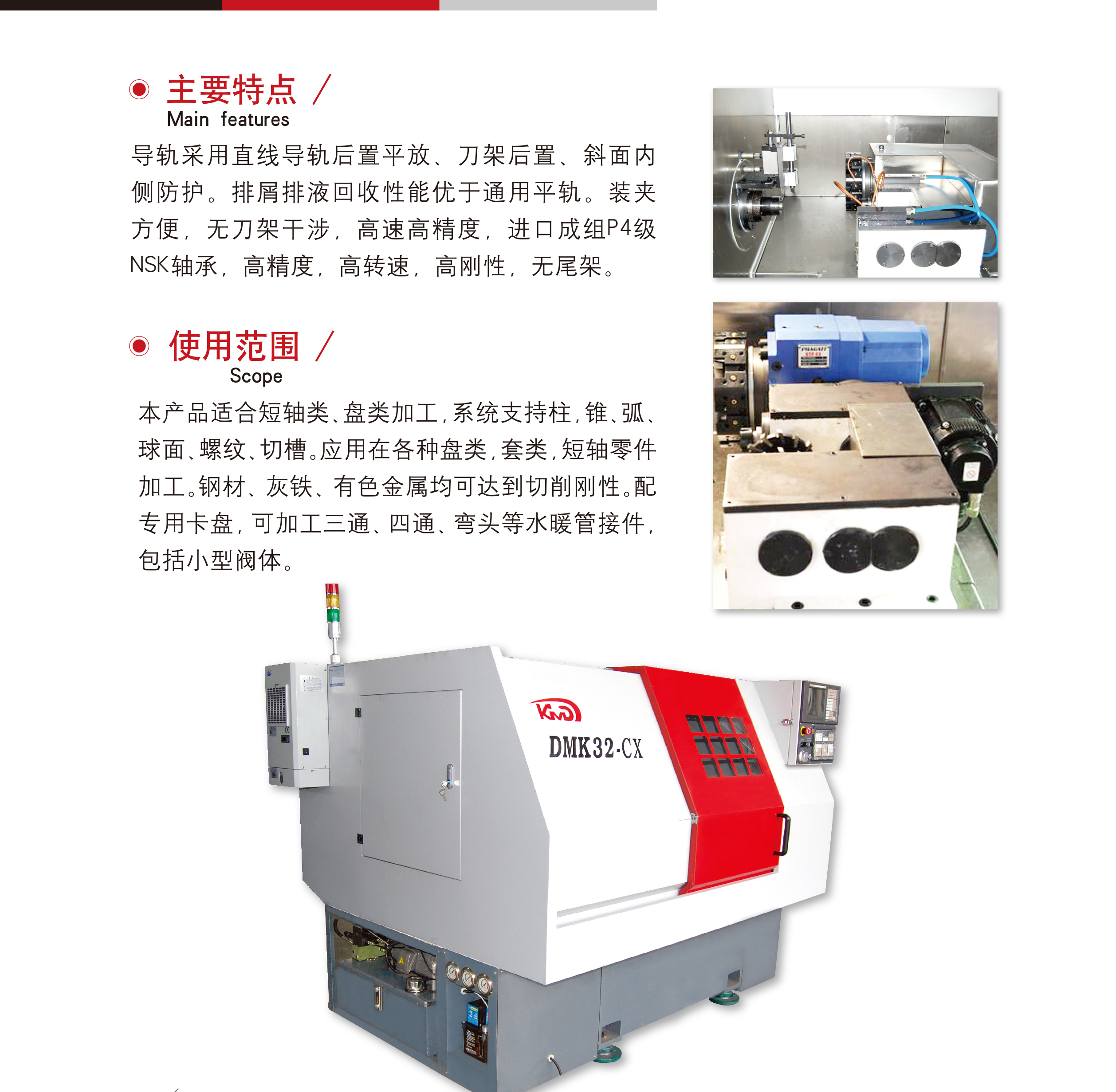 簡要描述: 導(dǎo)軌采用直線(xian)導軌後置平(ping)放、刀架後置(zhi)、斜面内側防(fáng)護。排㊙️屑排液(yè)回收性能優(yōu)于通用平軌(gui)。裝夾方便♊,無(wu)刀架幹涉,高(gao)速高精度,進(jìn)口成組P4級NSK軸(zhóu)承,高精度,高(gāo)轉速,高剛性(xìng),無尾架。